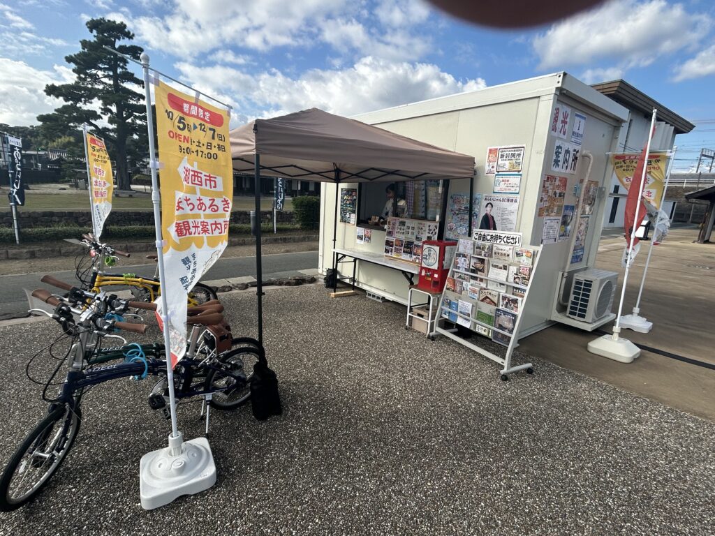 湖西市では、10月5日(日)から12月7日(日)までの金、土、日曜日及び祝日に、新居関所前と鷲津駅近く「はまなこサイクル」の2か所に、「まちあるき観光案内所」が開設されています。