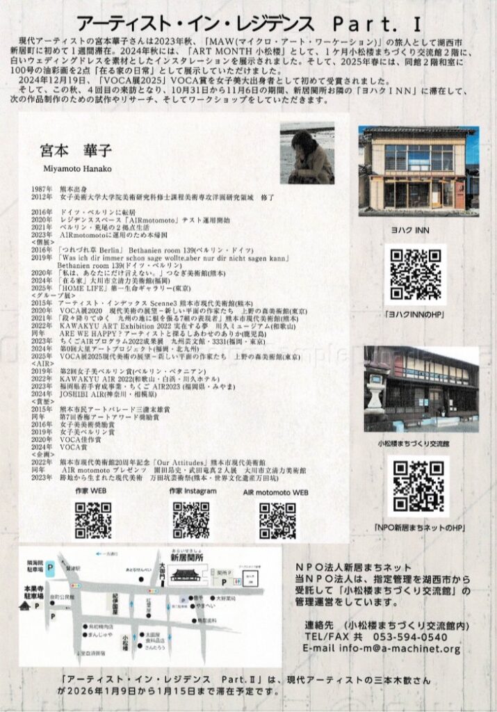 ※ 宮本華子 氏は、2023年秋から4回目の来訪で、今回は10月31日から11月6日までの滞在です。また、今回の滞在及びワークショップは、湖西市市民活動補助金事業【共生の為のアートプロジェクト】です。