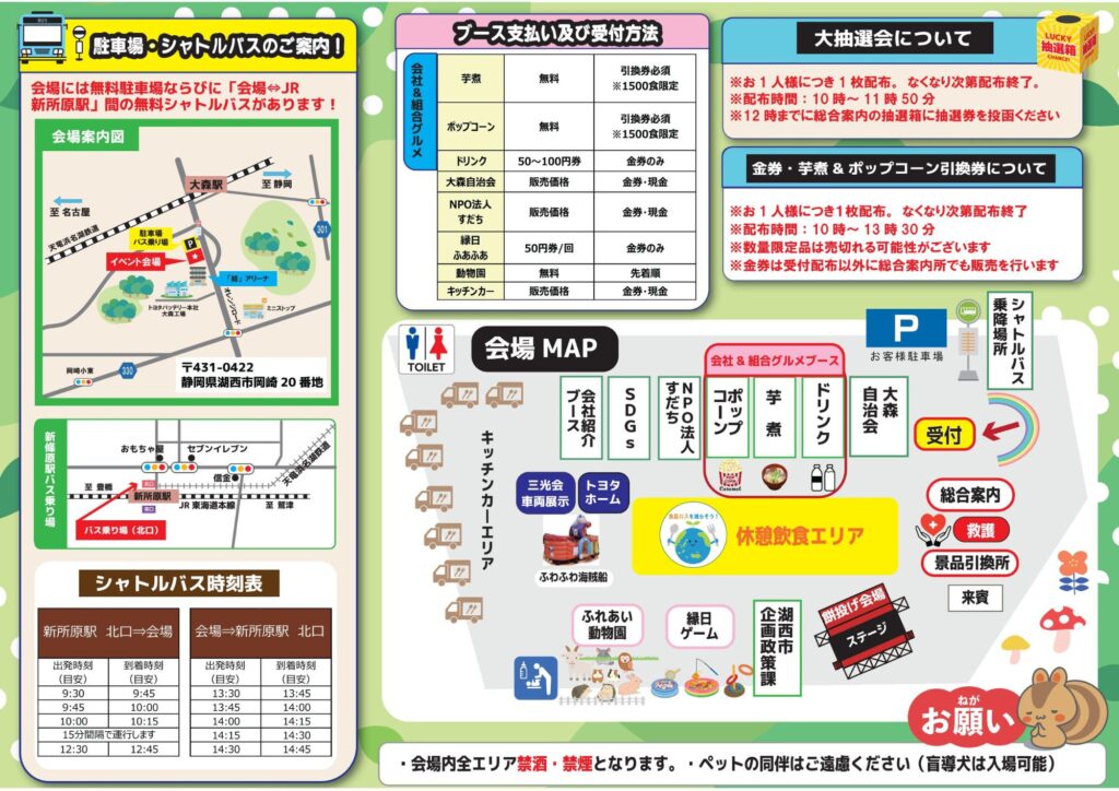 お車の駐車場に加え、シャトルバスも運行しますので、どうぞお気軽に足をお運びくださいね。