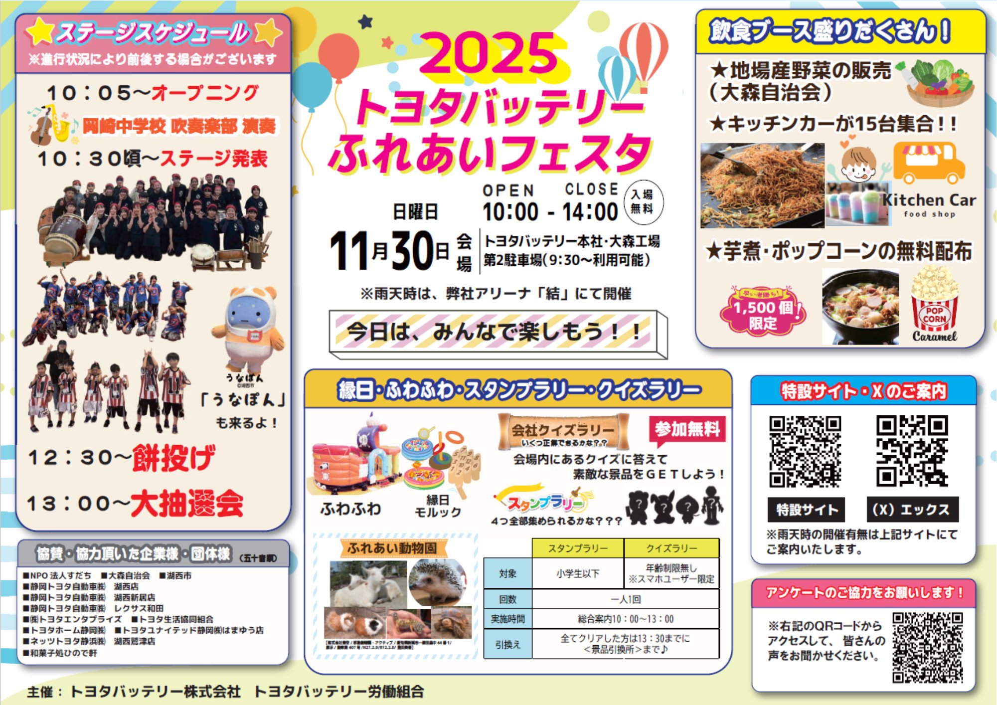 11.30(日)トヨタバッテリー本社・大森工場にて「ふれあいフェスタ」が開催されます。