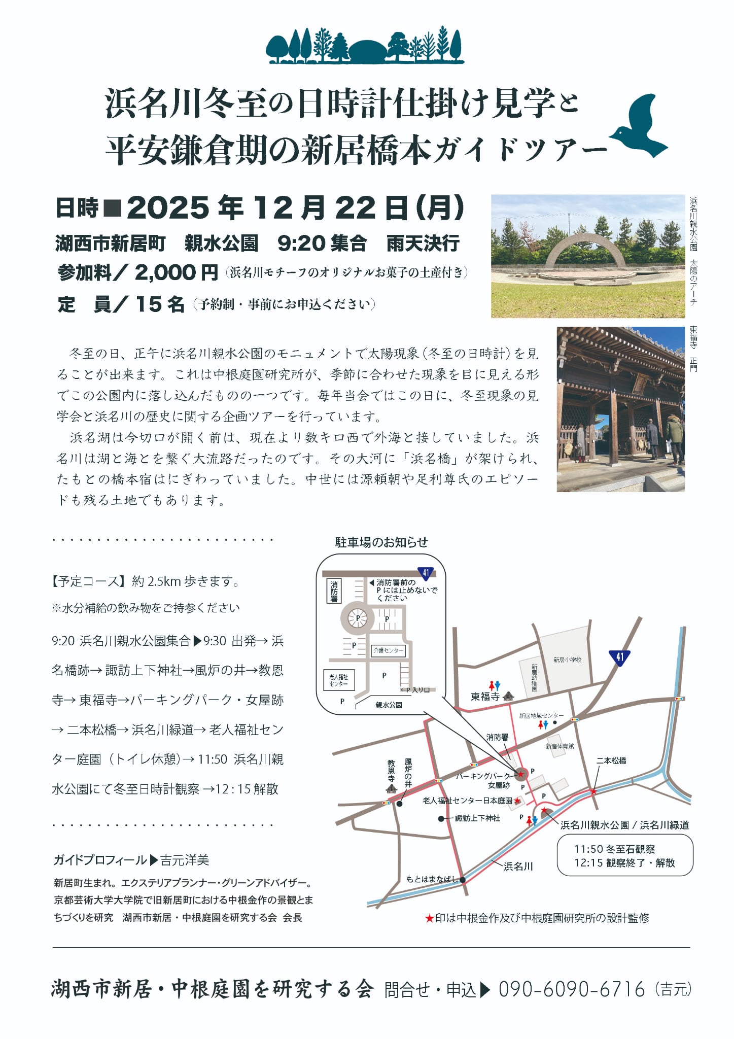 =浜名川冬至の日時計仕掛け見学と平安鎌倉期の新居橋本ガイドツアー=