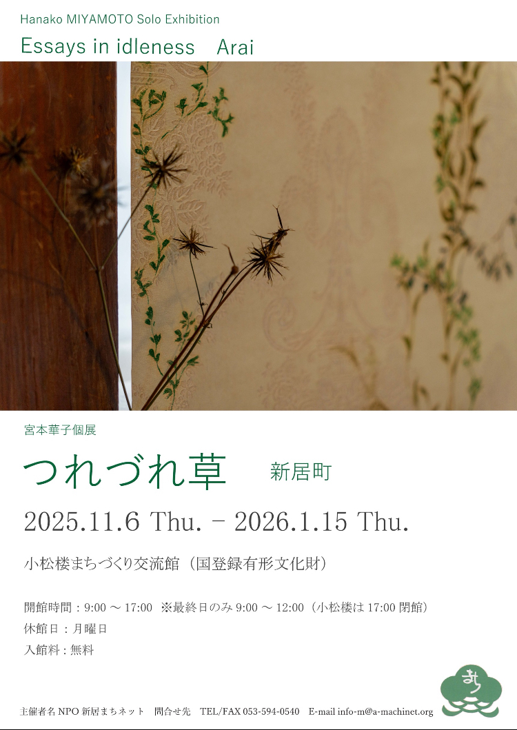 〇 問合せ NPO法人新居まちネット(小松楼まちづくり交流館内)TEL/FAX 053-594-0540 E-mail info-m@a-machinet.org