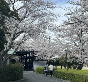中根金作 氏が手がけた公園で、図書館から望む池泉式の日本庭園があるほか、桜並木や落葉樹の散歩道、芝生広場、バラ園などがあります。近くにはショッピングセンターやカフェもあり、散策にも最適です。(4月=さくら、5月=バラ)
