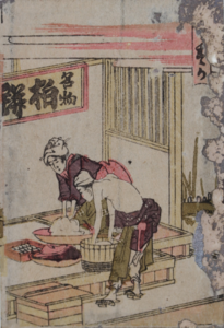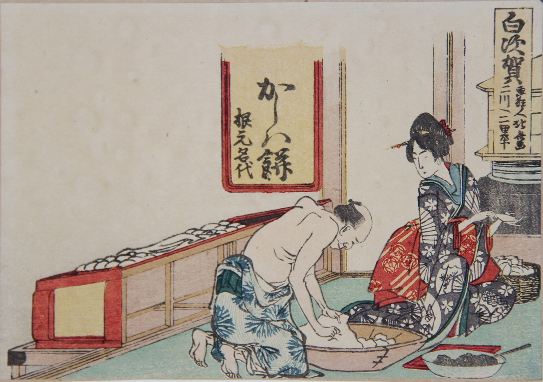 その後は、東海道白須賀宿の名物として広まり、葛飾北斎の浮世絵に描かれたほか数々の道中記などにも記されてきました。また、歌川広重は、白須賀と二川宿の間にあったとされる猿が馬場の柏餅を二川宿の紹介として描いています。