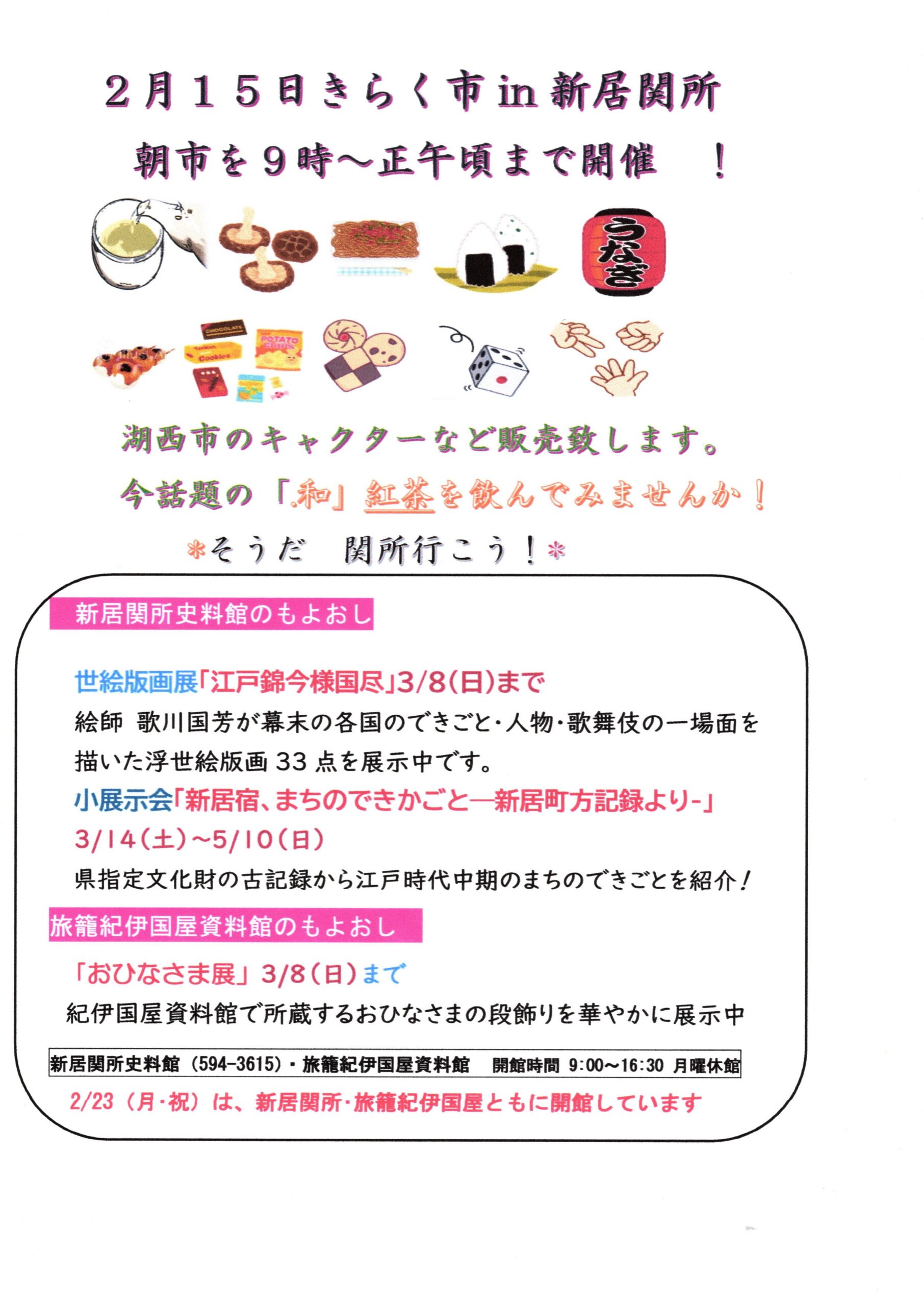 2月15日 新居関所できらく市開催!